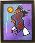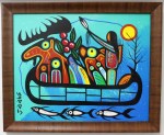 Gull Bay artist Kevin Belmore’s Ojibway name is Minowewegebon, which means “standing free”. Kevin is a disciple of the late Roy Thomas, who in turn was inspired by Norval Morrisseau, one of the founders of the Woodland School of Ojibway art and a member of the Aboriginal Group of Seven. This style of painting captures the spiritual tradition as it shines through the everyday, and is now practiced by several First Nation artists in Northwestern Ontario.