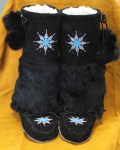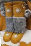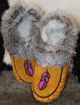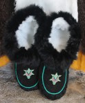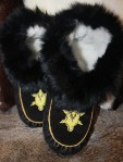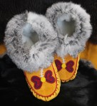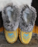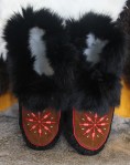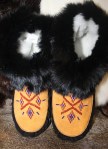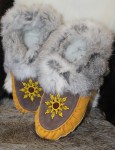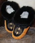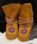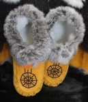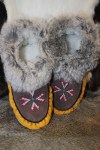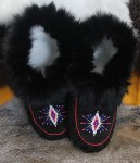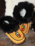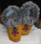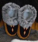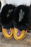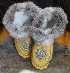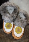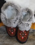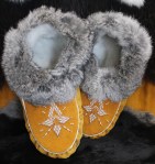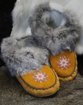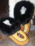 Come in and see the latest arrivals in our collection of moccasins & vintage winter wear for sale at the gallery. These beautiful and very practical accessories are all handmade by regional Indigenous craftspeople from moose or deer hide, and trimmed with real fur in the traditional way. Most of what we have is traditionally decorated, too, by beaded vamps (the part where shoelaces would be on European-style shoes).