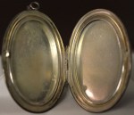 The floral patterns engraved on the earrings so closely match that on the locket, that I think it is safe to say that they are both of an age, and were probably produced between 1942 and sometime in the 1950s. It is a lovely set showing light wear to the backs consistent with use. The locket has the number 62 faintly and rather crudely scratched on each side of the interior of the locket – the numbers would be covered up by photos.