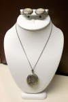 Sterling silver screw-backed earrings by Smith and Bond, and oval sterling silver locket by Birks-Burkhardt, ca. mid-1900s: SOLD