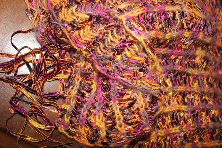 This luxuriant hand-knit scarf is full of the glory of autumn, and really cosy when there’s a nippy foretaste of winter in the air. This scarf is light as a feather and warm as Eiderdown.